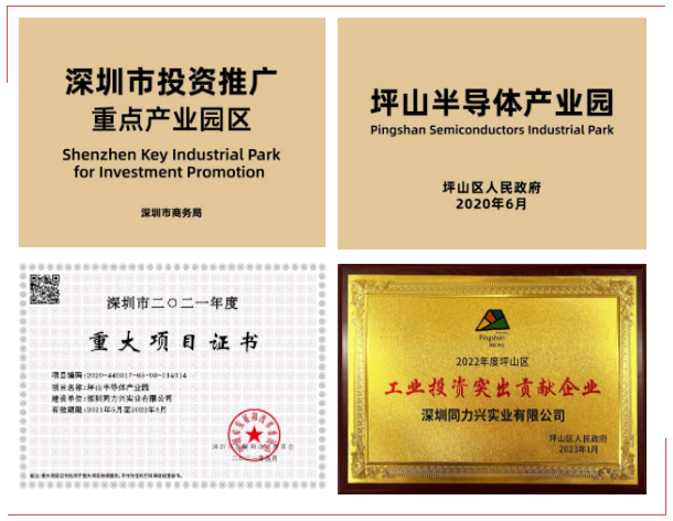 多彩硅谷建筑面積達50萬平米,總投資超過30億元人民幣;建成后,園區產值將超過200億元,稅收超過10億元;被深圳市發改委評定為深圳市重大項目、被深圳市商務評定局評定為深圳市重點推廣園區、被坪山區區政府授牌為坪山區半導體產業園,榮獲“2022年度坪山工業投資突出貢獻企業”獎。