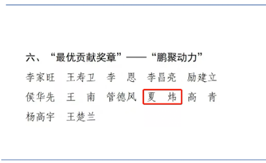 深圳市新聯(lián)會(huì)副會(huì)長(zhǎng)、坪山區(qū)新聯(lián)會(huì)會(huì)長(zhǎng)、多彩實(shí)業(yè)集團(tuán)董事長(zhǎng)、北航投資有限公司董事長(zhǎng)夏煒榮獲“鵬城新力”最優(yōu)貢獻(xiàn)獎(jiǎng)?wù)拢?/span>坪山區(qū)新聯(lián)會(huì)會(huì)員、北航投資有限公司常務(wù)副總經(jīng)理李森榮獲“鵬城新力”百花獎(jiǎng)?wù)隆?/span>