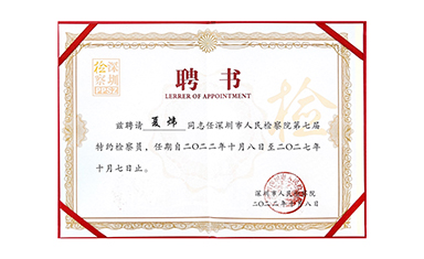 深圳市政協(xié)經(jīng)濟(jì)委員會(huì)副主任、深圳市浙江商會(huì)會(huì)長(zhǎng)、深圳市多彩實(shí)業(yè)集團(tuán)董事長(zhǎng)夏煒榮任檢察院特約檢察員。